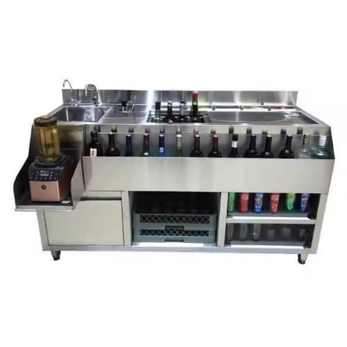 This stainless steel cocktail bar station is built for speed, hygiene, and durability in busy bars, restaurants, hotels, and event venues. It provides a complete workstation with compartments for ice, bottles, garnishes, appliances, and cleaning, allowing bartenders to work efficiently in one organized setup.